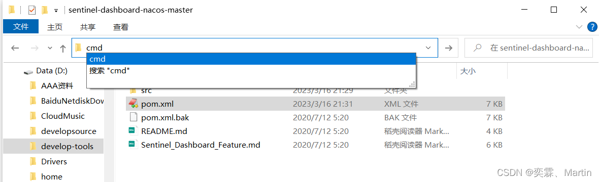 3、进入项目根目录,输入cmd,执行