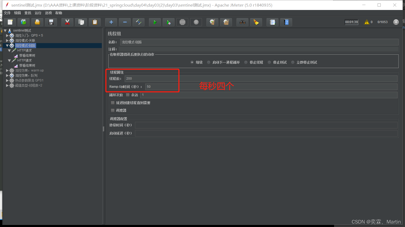 需求:需求:给ProductFeign的查询用户接口设置流控规则,线程数不能超过 ,利用jemeter测试。