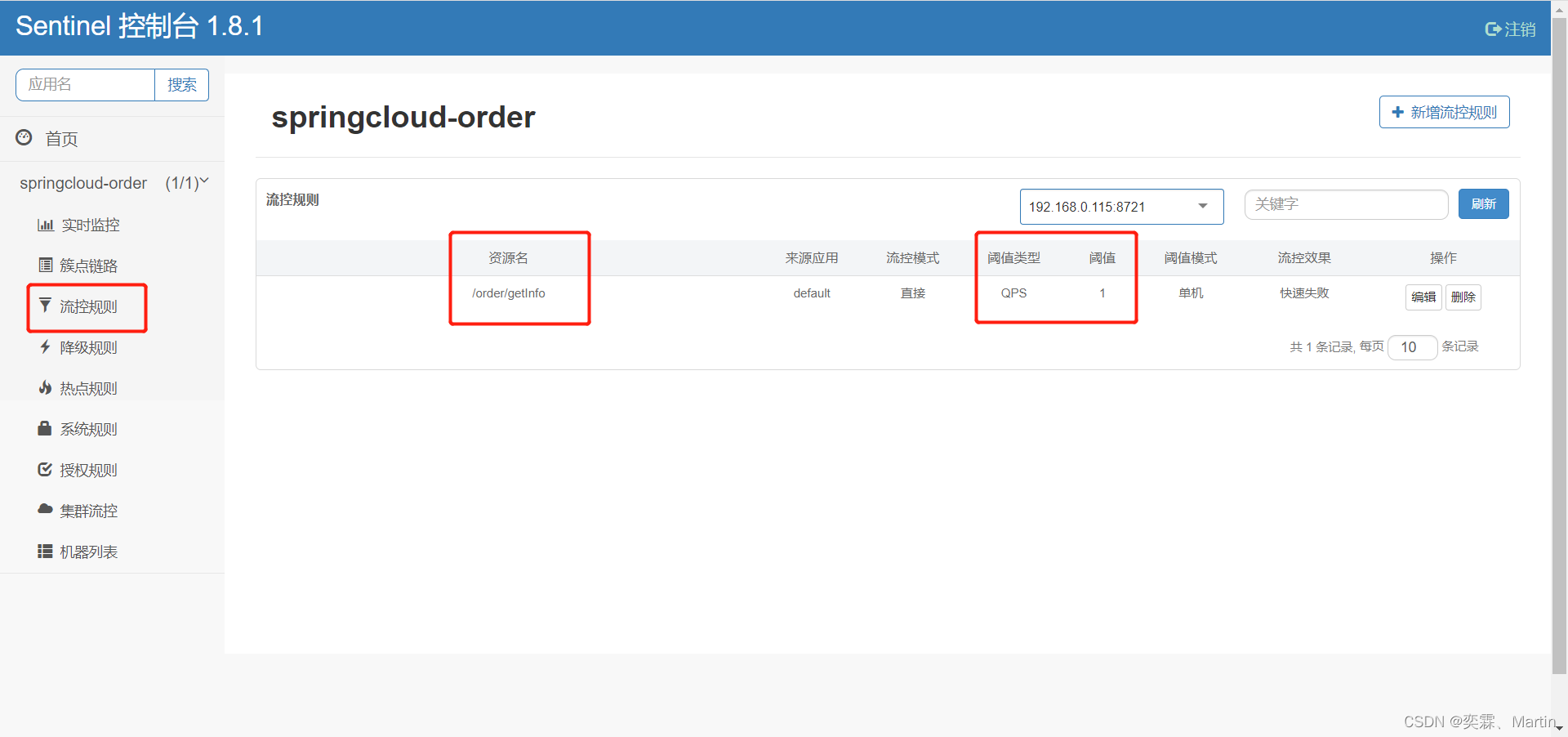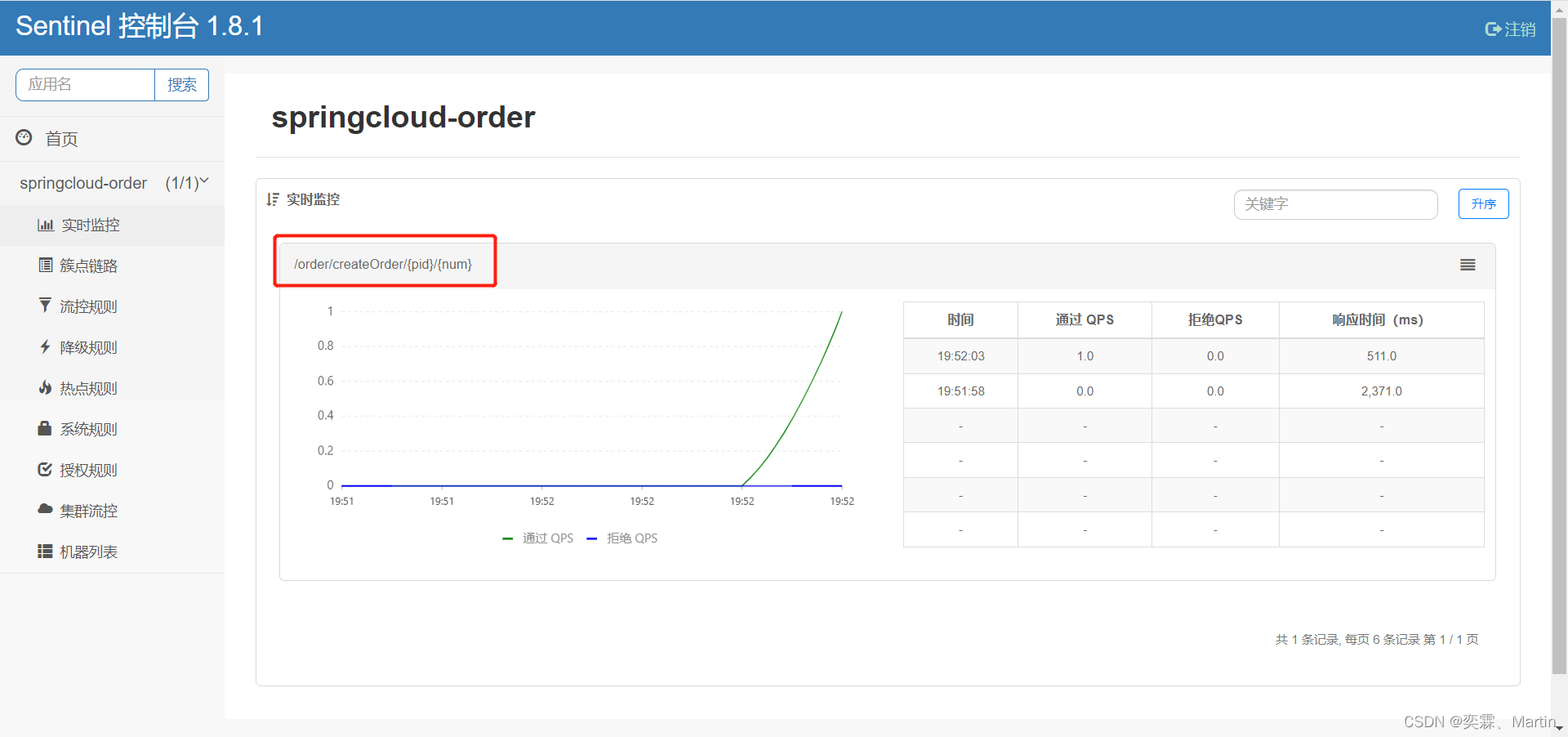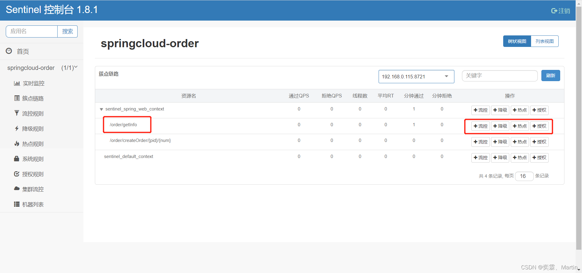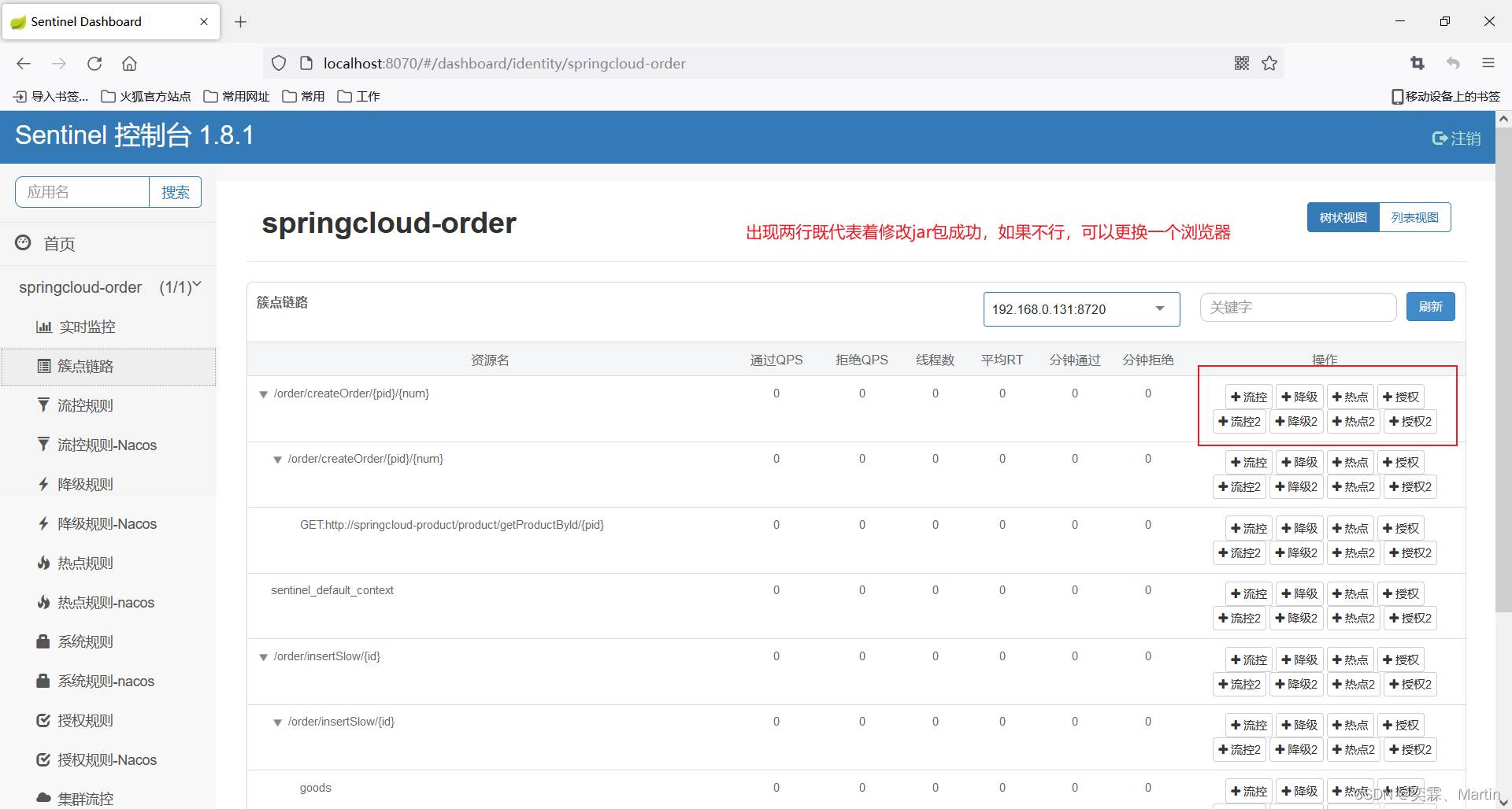 更改并发布完配置文件之后,查看sentinel控制台