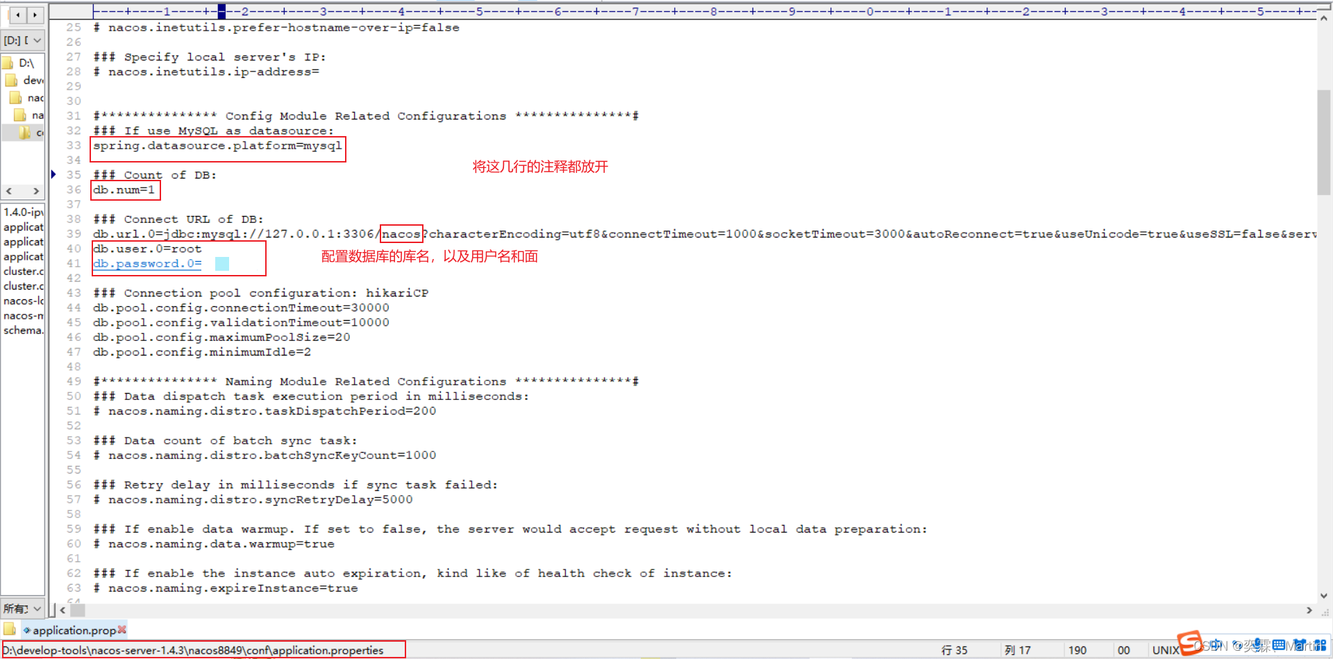 进入到/nacos8849/conf/application.properties文件中
