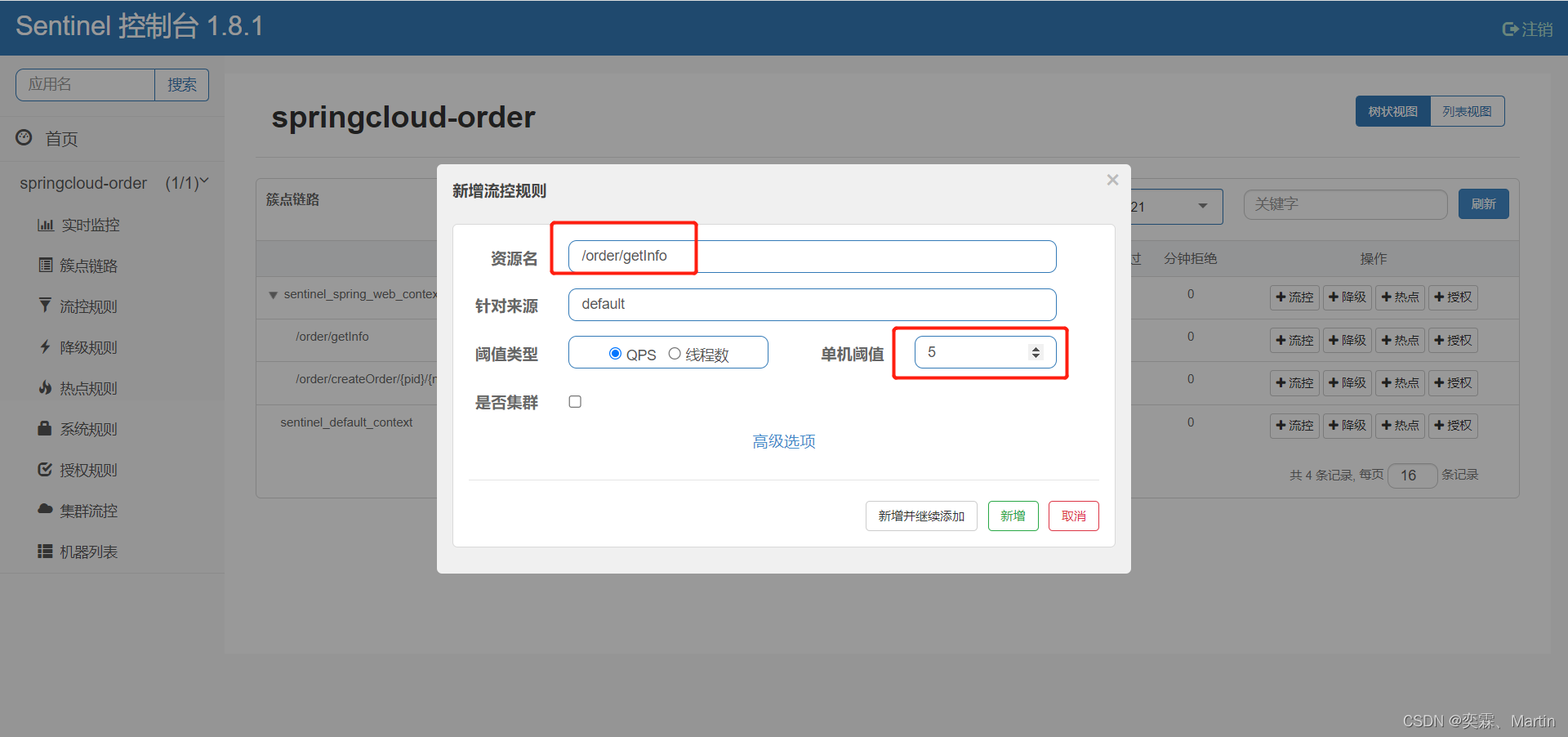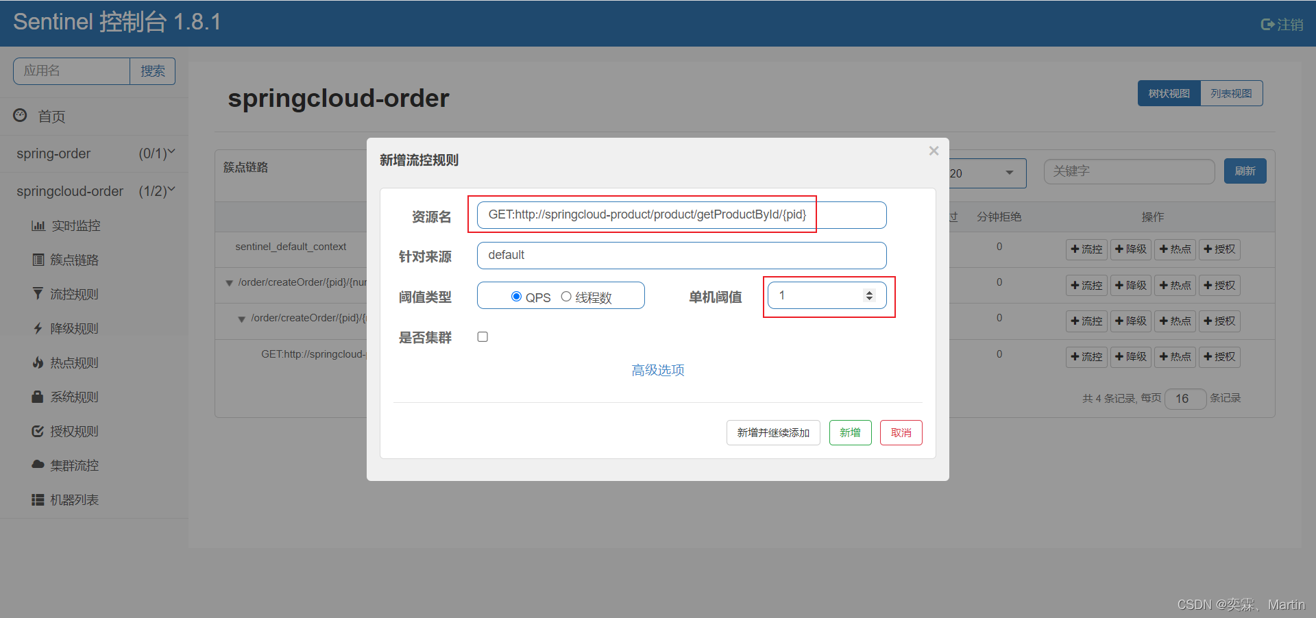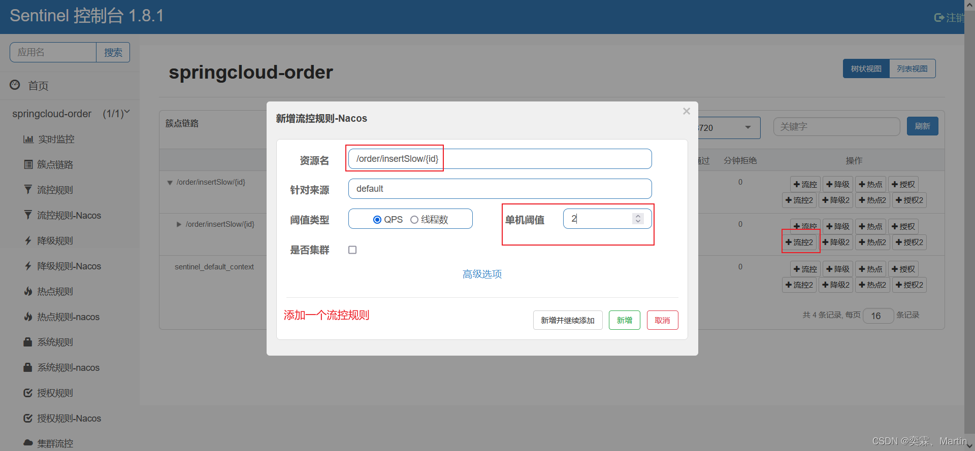 4、添加流控规则