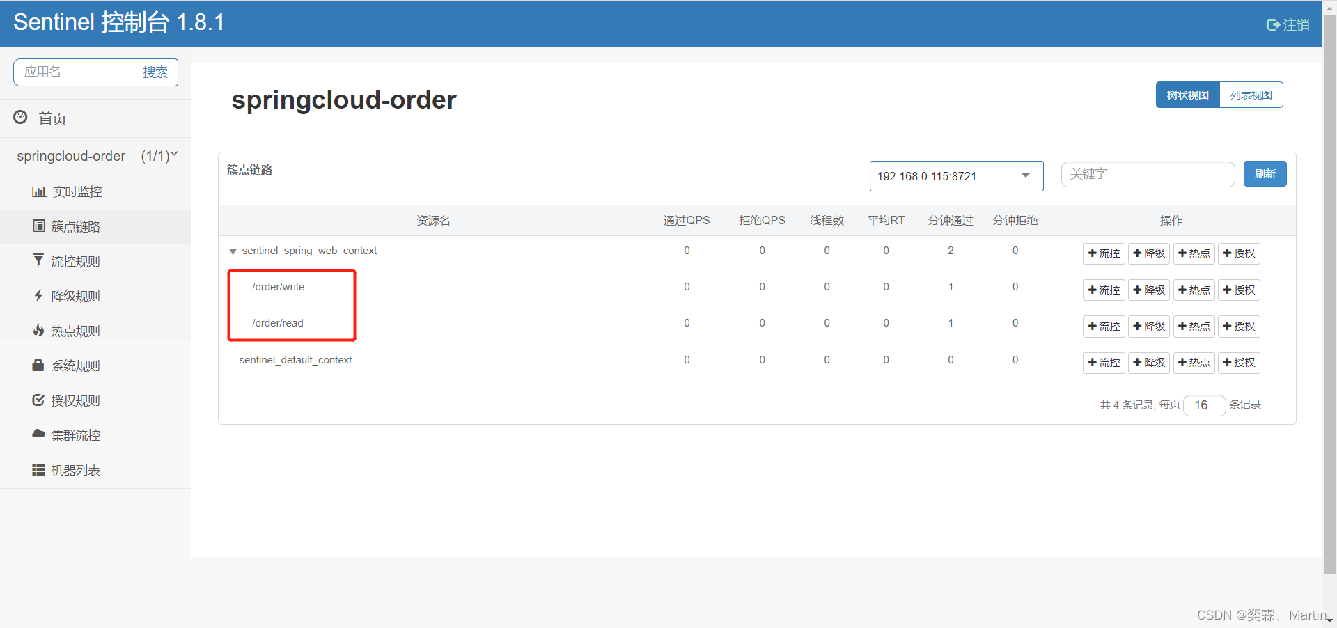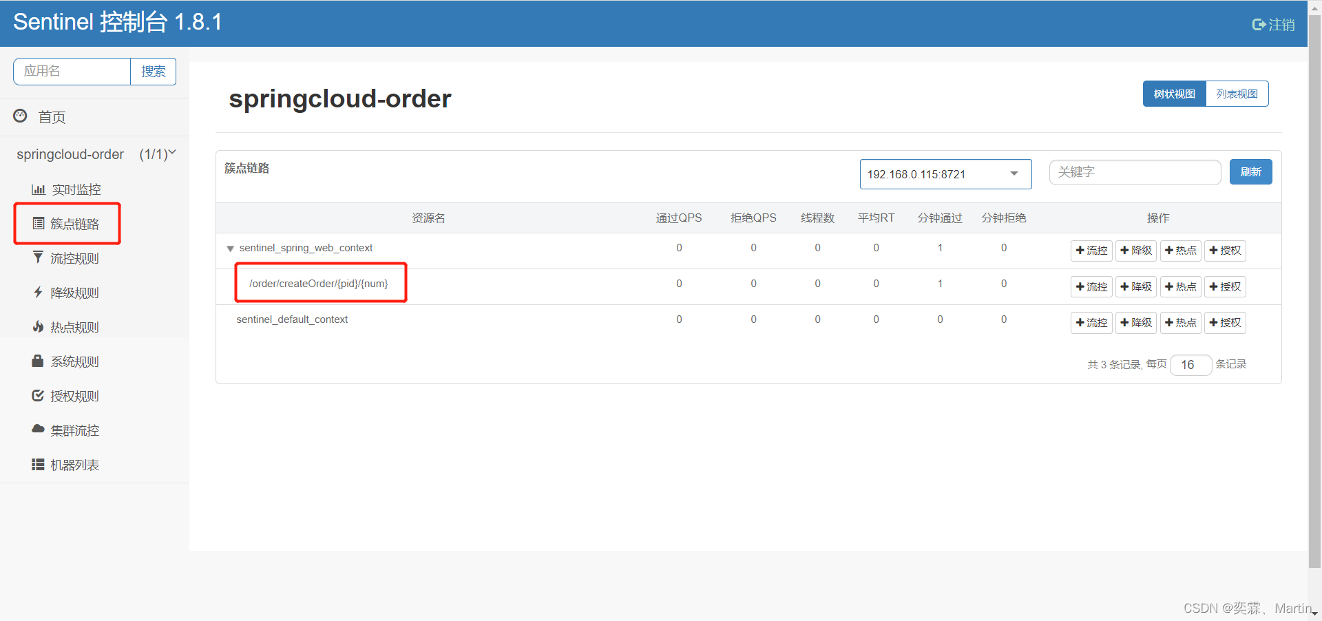 @GetMapping("queryHot/{id}")@SentinelResource("hot") //因为参数热点的限流,默认为springmvc簇点链路是无效的,所以添加资源需要定义public String queryHot(@PathVariable Integer id){orderService.queryGoods();return "查询订单"+id;}