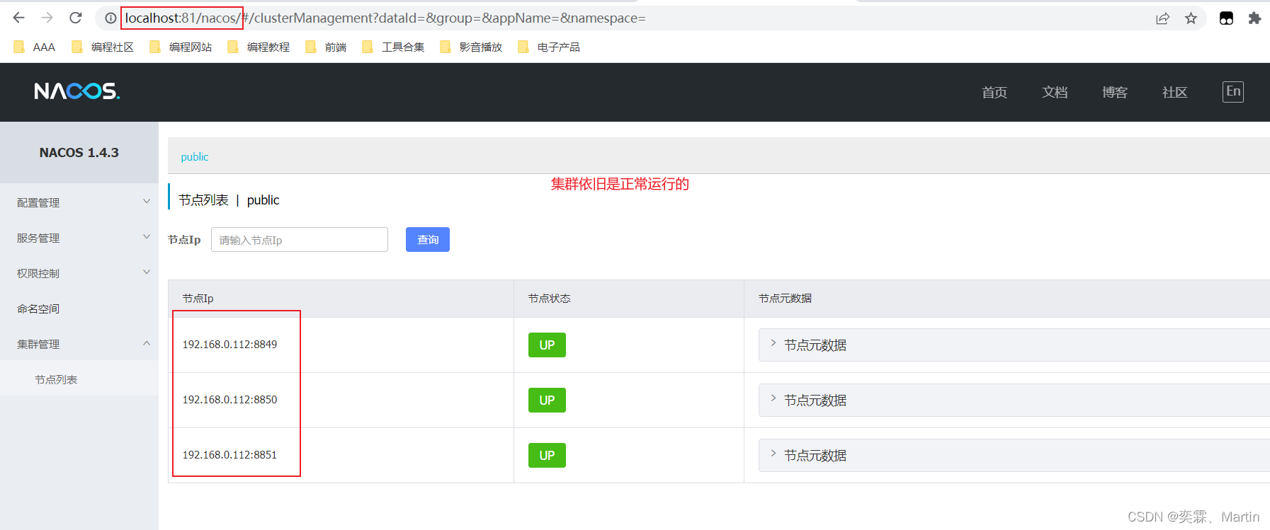 访问其中任意一个nacos服务,查看集群列表