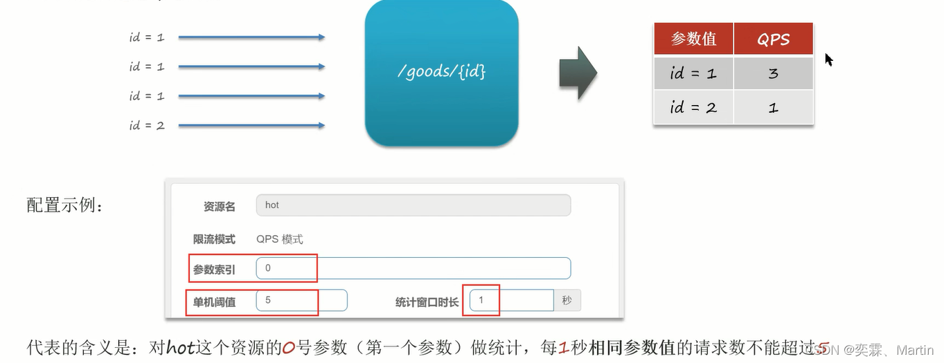 结合上一个配置,这里的含义是对O号的long类型参数限流,每1秒相同参数的QPS不能超过5,有两个例外:如果参数值是100,则每1秒允许的QPS为10如果参数值是1O1,则每1秒允许的QPS为15
