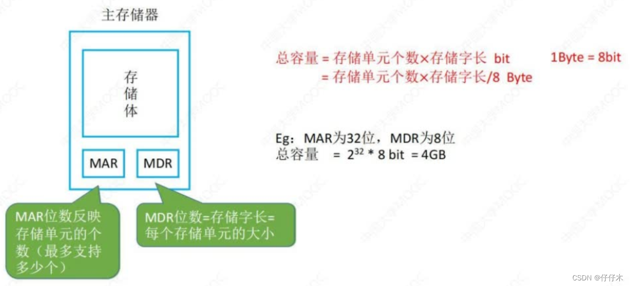 主存容量 = 存储单位个数×存储字长(bit位) = 存储单元个数×存储字长/8(Byte字节)
