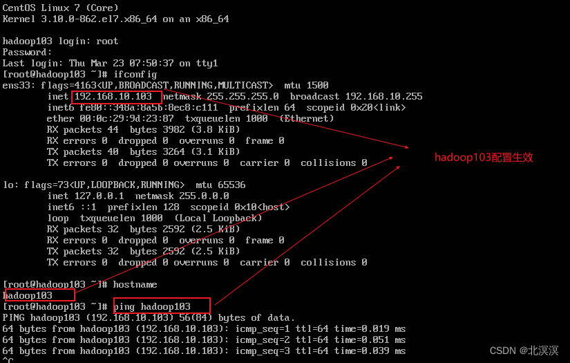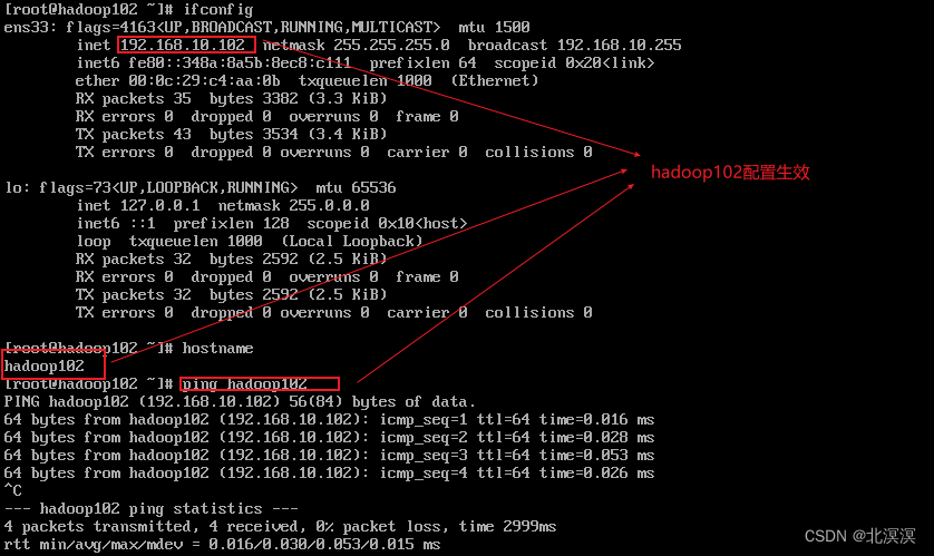 ⑥重复以上步骤,将hadoop102、hadoop103的虚拟机IP地址和主机名称分别改成固定ip和对应的主机名称