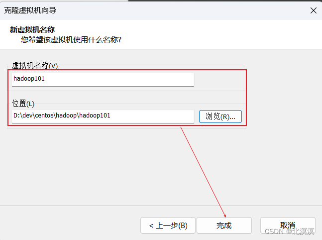 ④ 填写虚拟机名称及选择克隆虚拟机的安装位置,点击完成