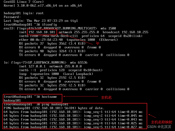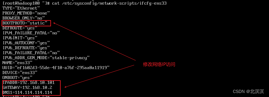 ② 使用vi编辑器修改hadoop101虚拟机的ip地址