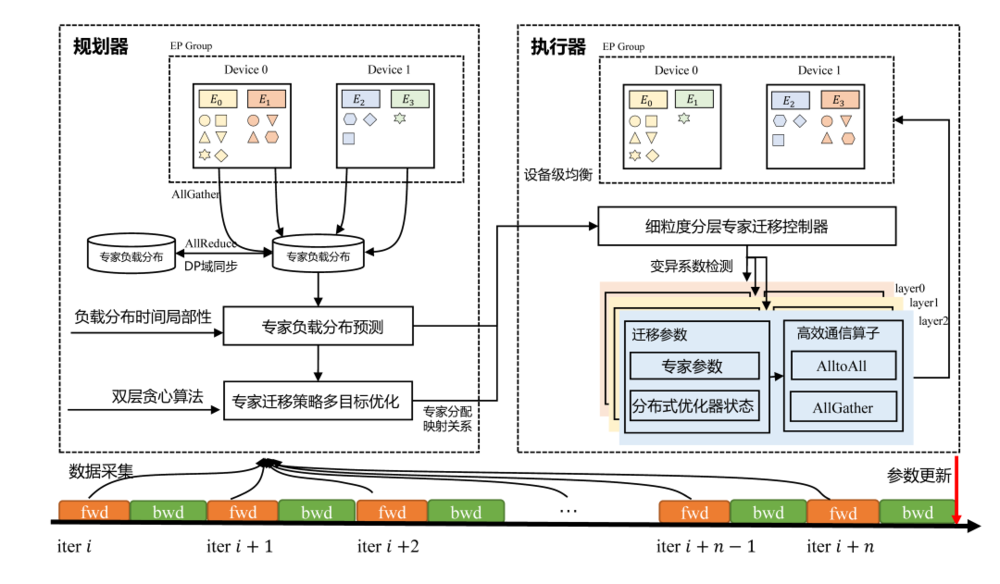 图3:基于专家动态迁移的EP间负载均衡整体框架图
