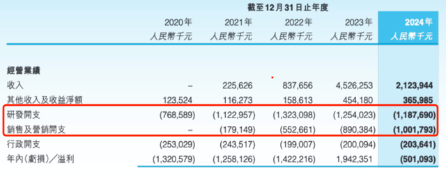 更值得警惕的是财务结构的失衡:2024年销售及营销开支达10.02亿元,同比增加12.51%,销售费用率高达47.17%,而研发投入却逆势缩减5.29%至11.88亿元。