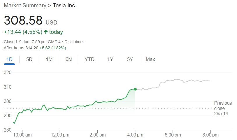 或许是受到上述消息影响,美股周一收盘时,道指初步收跌1点,标普500指数涨0.09%,纳指涨0.31%,特斯拉涨4.55%。