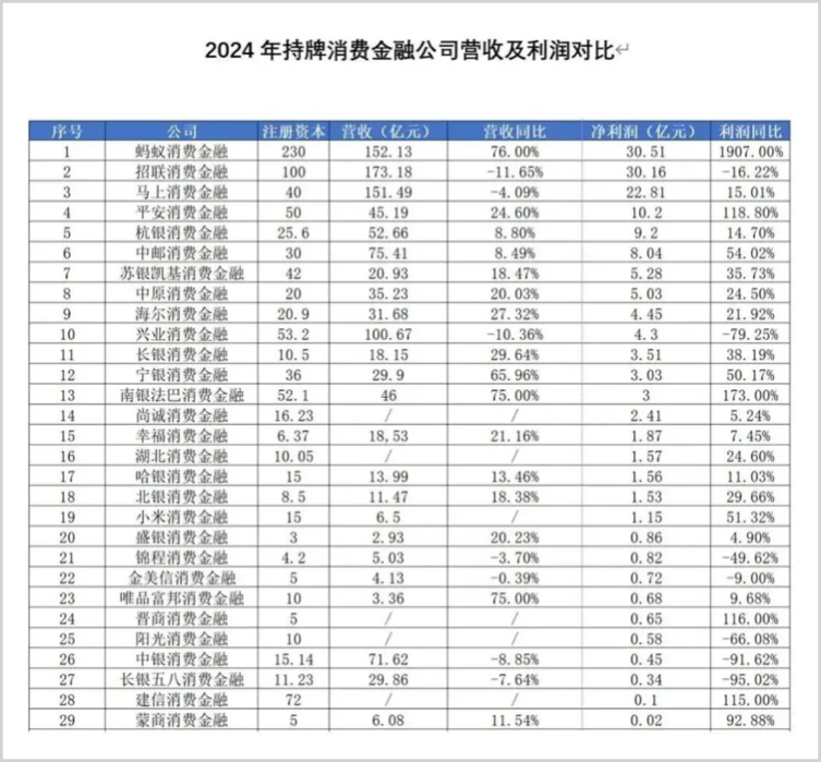 到2024年,收入罕见萎缩,是已公布业绩中6家营收下滑的企业,相比来看,蚂蚁消金、宁银消金则凭借互联网流量和独特的区位优势在快速奔跑。
