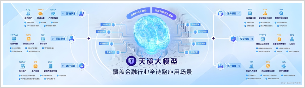 试图以AI技术重塑对外形象,并将自己定位为“技术驱动的数字金融机构”,目前“天镜”大模型已升级至3.0版本,覆盖智能营销、风险管理等八大场景。