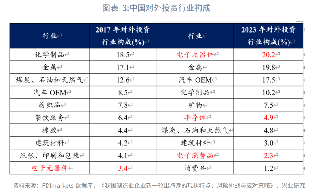 我们正在经历一场从“北方全球化”到以中国为代表的“南方全球化”的转变。我们利用大模型对上市公司2005年至今二十年的公告进行的大数据分析表明,我国企业的出海行业结构也从早期的资源与劳动密集型产业,如化工、金属、煤炭等,逐步向技术密集型产业升级,如电子元器件、机械制造、汽车等。这表明中国企业的海外扩张,已从成本导向转向全球产业链协同导向,追求的是技术嵌入与产业体系整合,而非简单的低价出口。