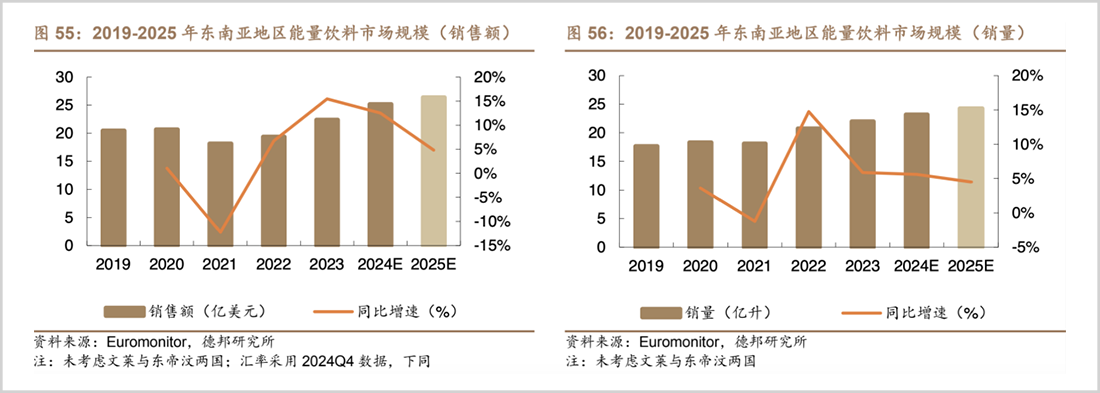 东南亚是世界上人口稠密的地区之一,人口总数达6.25亿,且随着制造业转移,蓝领崛起,能量饮料需求蓄势待发,高温天气亦推动其他饮品需求;加上地理区位较近,文化相似,入局东南亚是一个不错的选择。