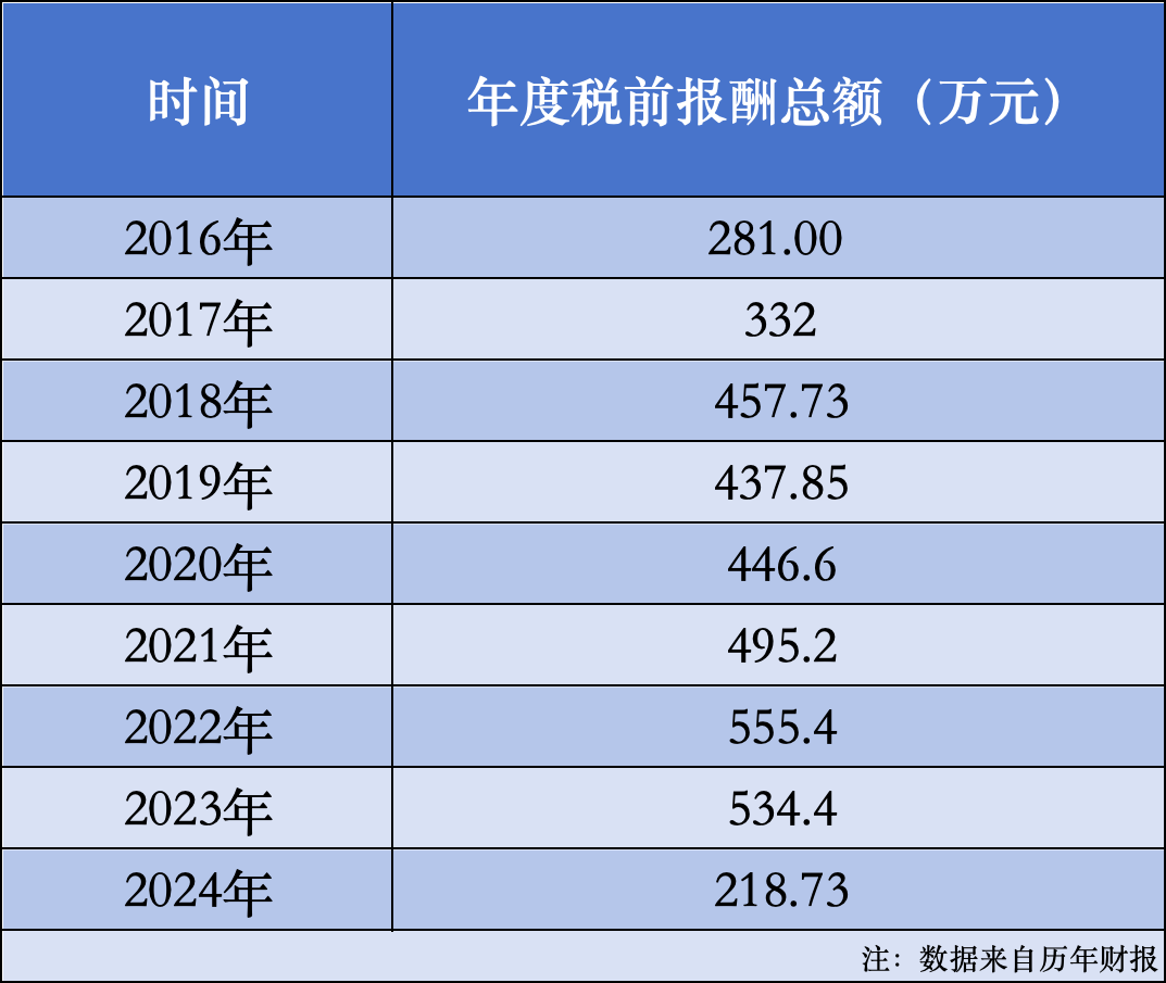 数据显示,2016年,其税前年薪从上年的234.16万元涨至281万元,次年提升至332万元;2018年再上一个门槛,对应457.73万元,2022年最高,为555.4万元。去年,华发股份高管普遍降薪,彼时张延的年薪仍有218.73万元,较上年降低了59%。