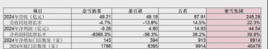 2024年的财务数据非常亮眼,公司实现营业收入248.29亿元,同比增长22.3%;毛利80.60亿元,同比增长34.4%;归母净利润44.37亿元,同比增长41.4%。收入利润均实现两位数增长。对比另外三家港股茶饮公司,蜜雪业绩稳居行业榜首,古茗增长,茶百道业绩下滑,奈雪的茶则出现亏损。蜜雪2024年净增加8914家门店,一骑绝尘。