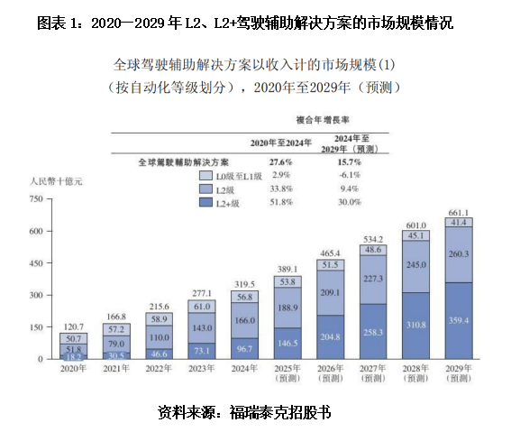 福瑞泰克的招股书还显示,2027年L2级驾驶辅助解决方案的市场规模为2273亿元,而L2+级的市场规模预测为2583亿元。也就是说,自2026年开始,L2+级的市场规模或将反超L2级,并成为未来的主流。