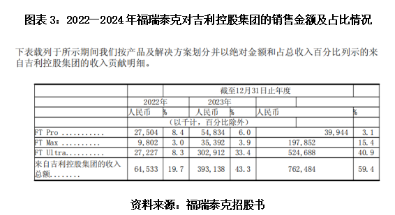 招股书显示,2022—2024年,福瑞泰克来自吉利控股集团的收入占比分别为19.7%、43.3%、59.4%,吉利控股集团各期均位列其第一大客户。在吉利控股集团的大额订单帮助下,福瑞泰克的业绩随之迅速增长。
