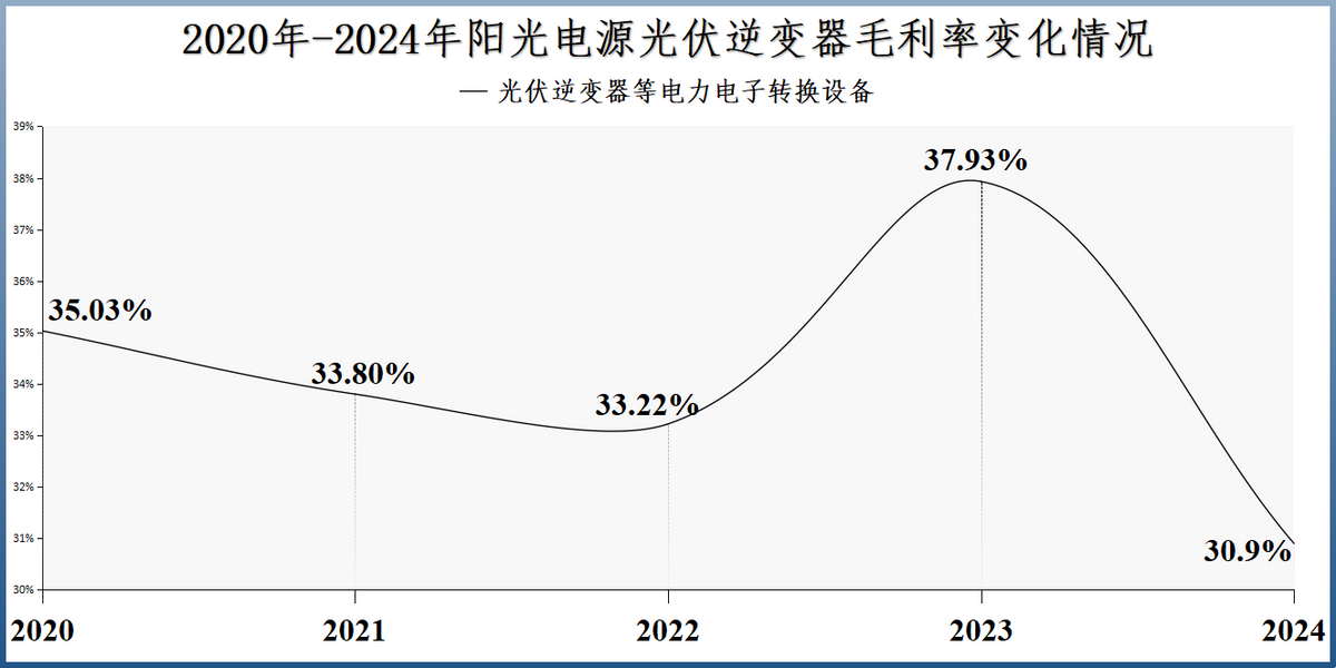 2023年公司光伏逆变器等电力电子转换设备毛利率还高达37.93%,2024年一下子就降到了30.9%,2020年以来的最低水平!