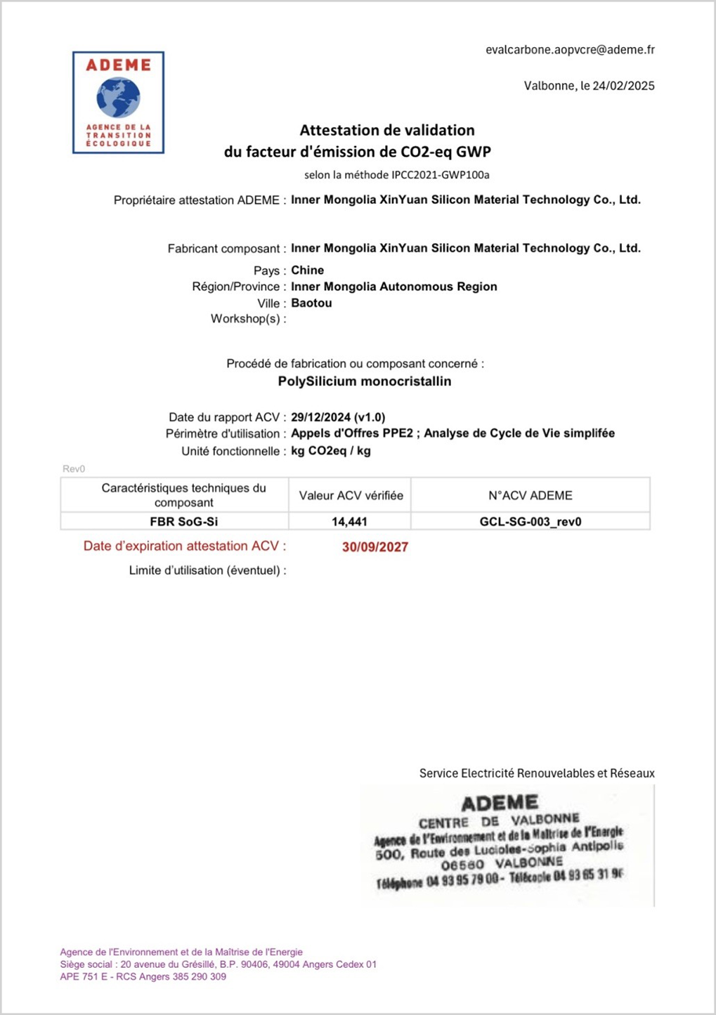 对比来看,颗粒硅生产过程低耗高产,更节能。每生产1千克FBR颗粒硅,碳足迹数值最低仅为14.441千克二氧化碳当量,较棒状硅下降75%。与此同时,颗粒硅下游,有免破碎、降低耗材损耗等优势,可助力光伏全产业链控碳减排。