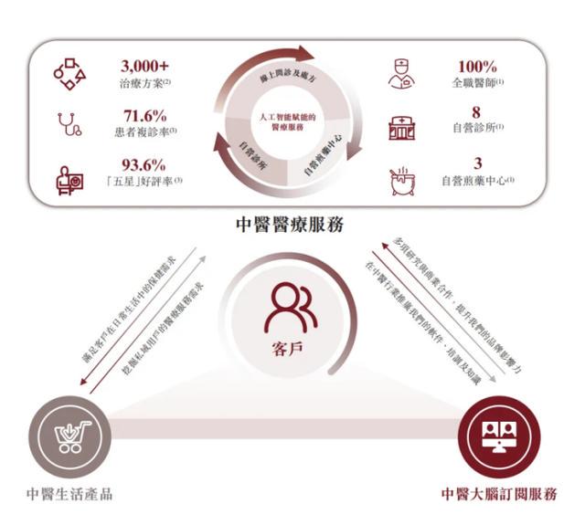 在冲刺“中医AI第一股”的同时,问止中医已构建起以线上中医医疗服务为核心、多业务协同发展的线上线下相结合的生态体系。招股书显示,该公司的三大业务板块——中医医疗服务、中医生活产品和中医大脑订阅服务,形成了完整的商业闭环,其中中医医疗服务板块以90%的营收占比成为核心引擎。