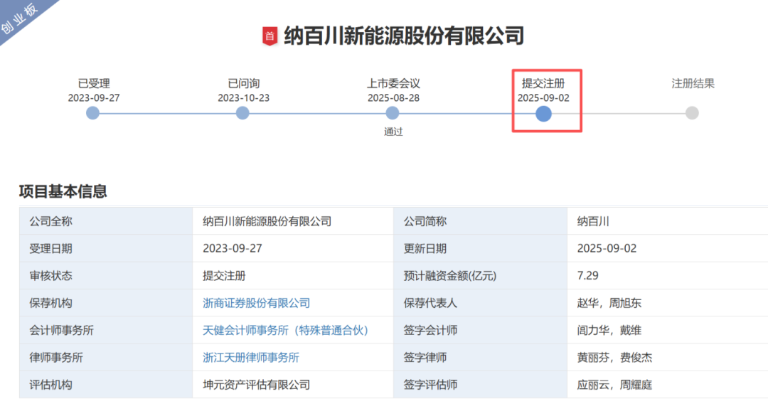 9月2日,深交所官网披露,纳百川新能源股份有限公司(下称“纳百川”)IPO审核状态已变更为“提交注册”。
