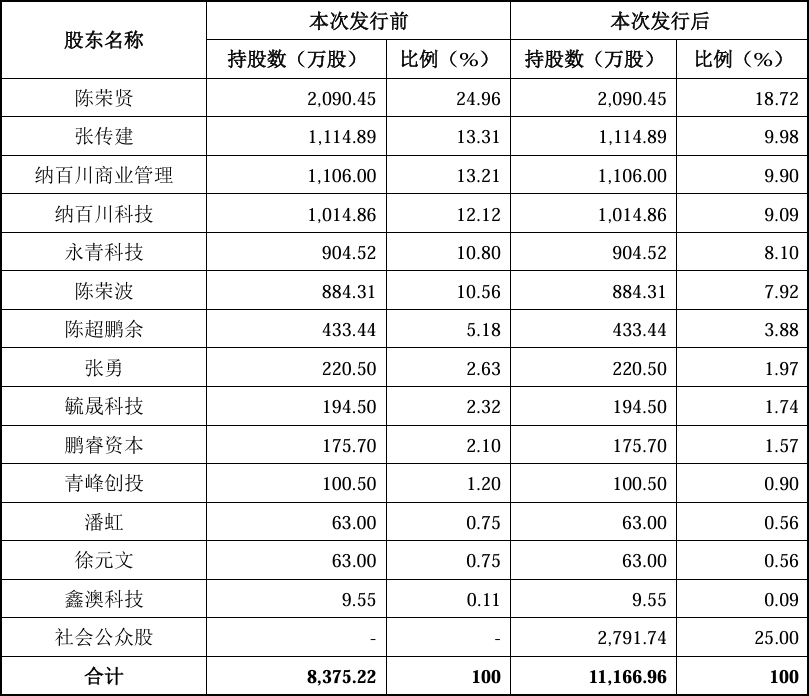 9月2日的发布的最新招股书显示,陈荣贤、张丽琴、陈超鹏余一家三口合计直接和间接控制公司55.58%的股份。