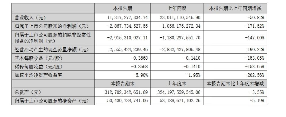 中报显示,2025年上半年,华侨城实现营业收入113.17亿元,较去年同期的230.11亿元同比下降50.82%;归属于上市公司股东的净利润为-28.68亿元,而去年同期为-10.56亿元,亏损幅度扩大了171.52%。