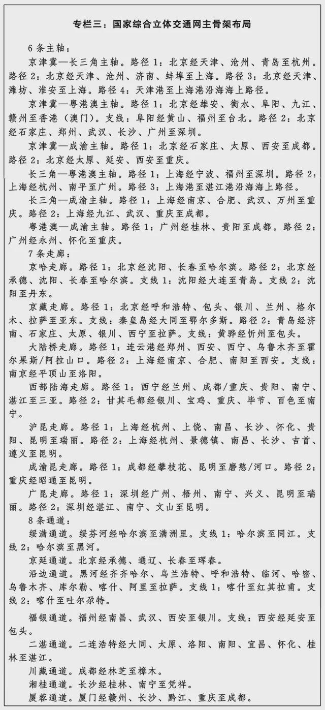 最具代表性的是2021年2月中办、国办印发的《国家综合立体交通网规划纲要》,其中明确指出: