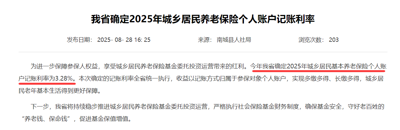 现在很多地方的居民基本养老保险个人账户记账利率都还在3%以上,比银行的存款利率高多了。所以,我一直建议过了40岁的参保人,尽量选择居民养老保险。
