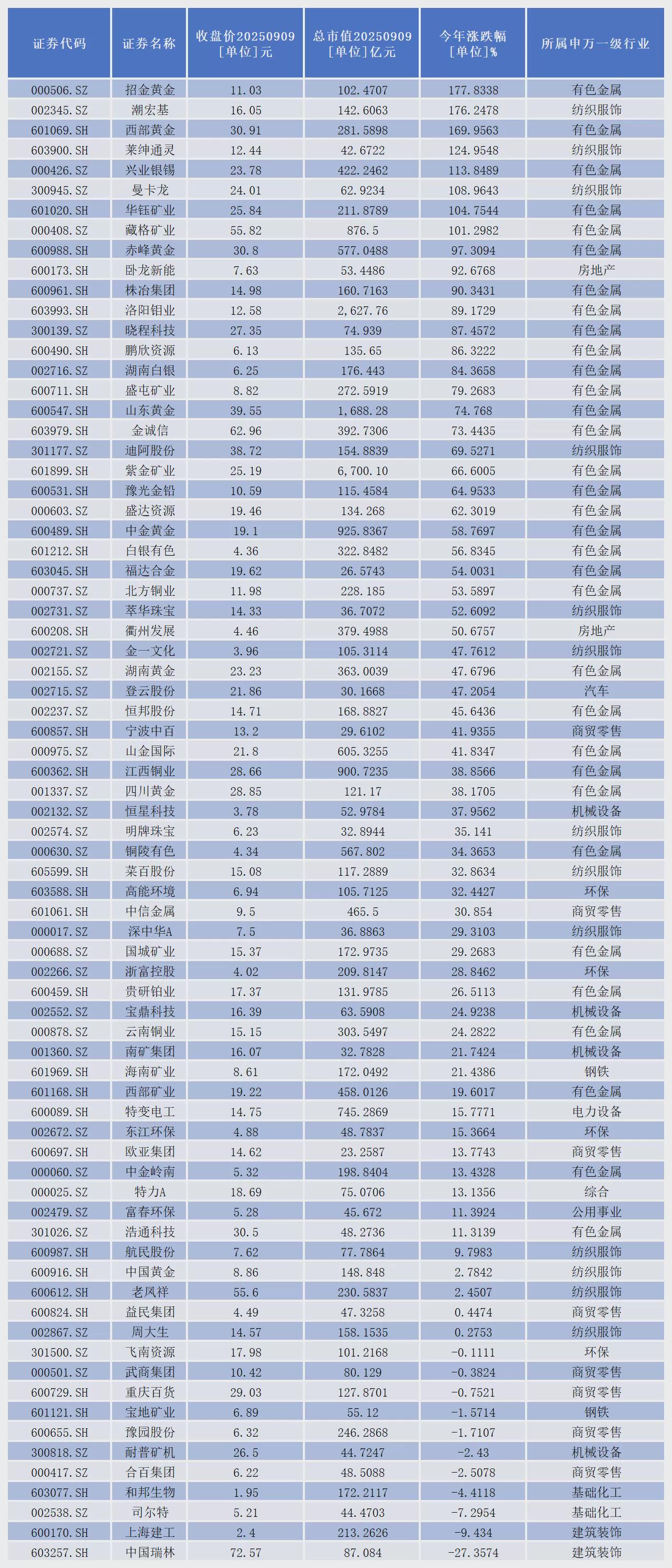 从二级市场表现看,今年以来,股价涨幅超过50%的有28家上市公司,其中,招金黄金、潮宏基、西部黄金、莱绅通灵、兴业银锡、曼卡龙、华钰矿业、藏格矿业8家上市公司已经成功实现翻倍。