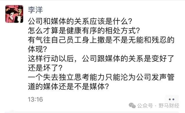 王腾事件之后,有好事者翻出了2019年36氪首席内容官李洋的五问朋友圈。当时,一位徐姓员工因为涉嫌泄露快手春晚方案、K3策略和电商数据和策略给36氪等媒体,而被快手解除劳动合同,所有期权也被追回。李洋在朋友圈回应时发问“公司和媒体的关系应该是什么?怎么才算是健康有序的相处方式?有气往自己员工身上撒是不是无能和残忍的体现?这样行动以后,公司和媒体的关系是变好了还是坏了?一个失去独立思考能力,只能沦为公司发声管道的媒体还是不是媒体?”虽然是6年前的追问,但如今在王腾事件的背景中再读来,依然值得深思。