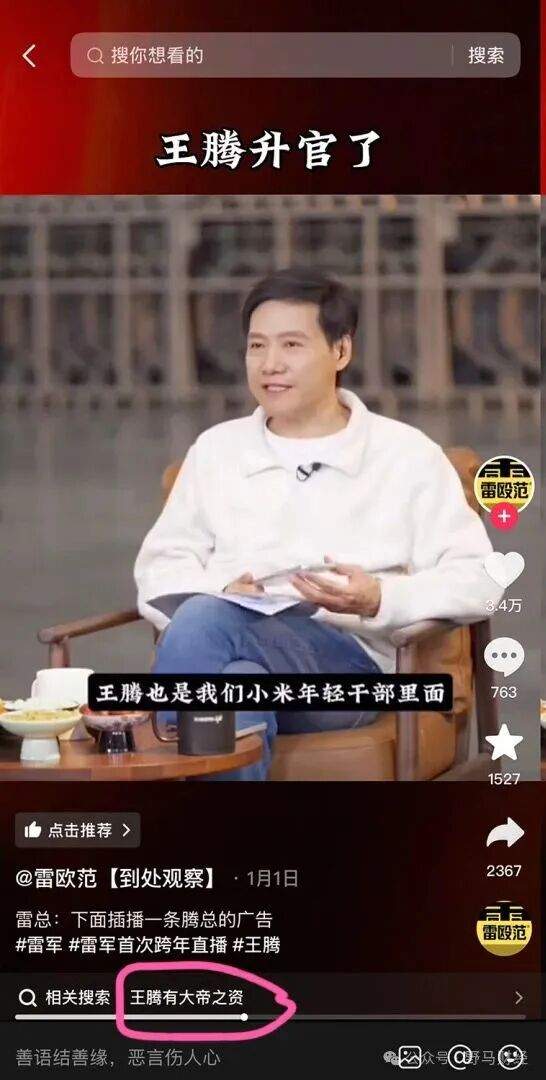 得到雷军这样的盛赞,米粉开始调侃王腾“有大帝之姿”。