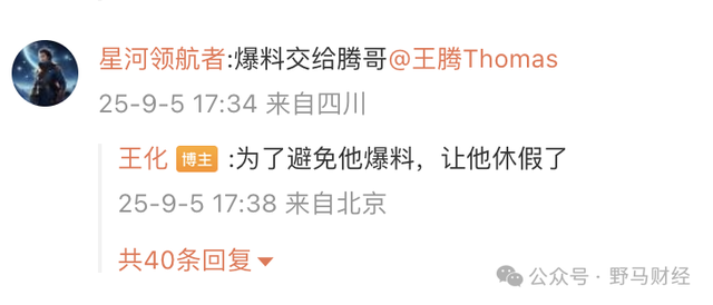 今年9月,王化还在微博回复网友评论时称,“为了避免王腾爆料,让他休假了”。