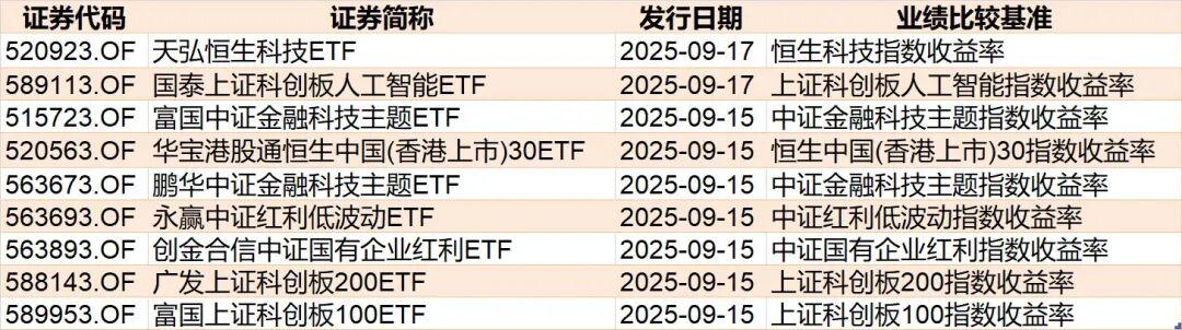 目前有9只ETF披露下周发行,跟踪标的有科创100、科创200、金融科技、科创板人工智能等。
