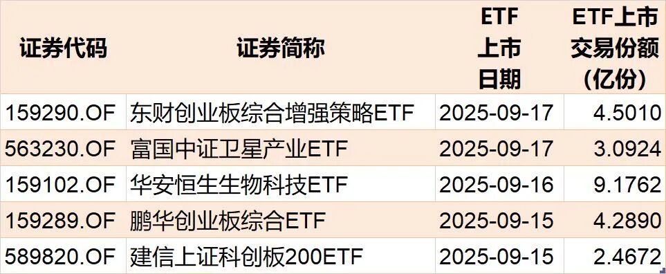 目前有5只ETF披露下周上市,跟踪标的为科创板200、创业板综合、恒生生物科技、卫星产业等。