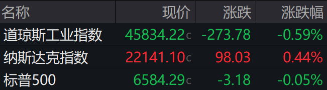 当地时间上周五,美股涨跌互现,纳指收盘创历史新高。截至收盘,道指跌0.59%,纳指涨0.44%,标普500指数跌0.05%。