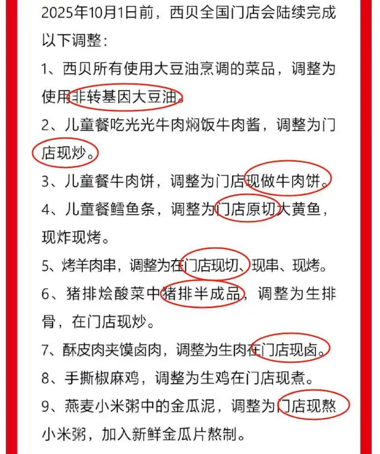 从致歉信的一系列调整措施来看,这相当于西贝变相承认了门店此前存在使用转基因大豆油、预加工牛肉饼、预加工肉夹馍卤肉等食材制作儿童餐的事实。