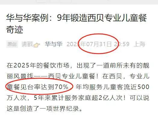 深蓝财经发现,巧合的是,本次网络口水战爆发前,“华与华”在其公众号发表文章,详细介绍了为西贝提供的品牌服务案例。总结来看,其核心贡献是用近10年时间,将西贝儿童餐从配角打造成主角,尤其是“家有宝贝,就吃西贝”的宣传语成为记忆点。配合这一口号,西贝儿童餐主打“轻盐、轻糖、轻油”特点,以上菜快、食材宣传“有机”、提供专属生日宴服务等优势,确实俘获了大批城市中产妈妈的青睐。