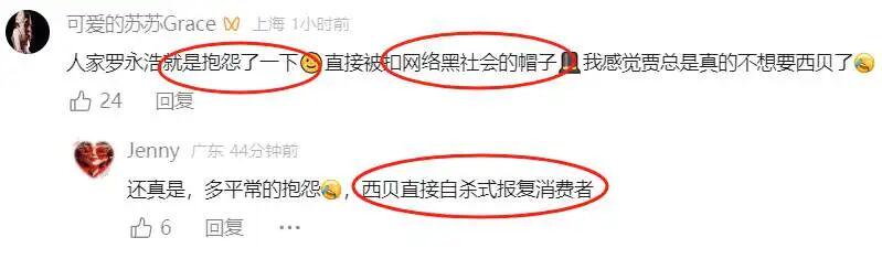 原本网友已对西贝的态度感到反感,贾国龙的“黑嘴”论更是让舆论彻底一边倒。有网友表示,罗永浩只是抱怨几句,就被贴上“网络黑社会”的标签……“西贝这是在进行自杀式报复消费者”,消费者只是想花钱花得值而已。