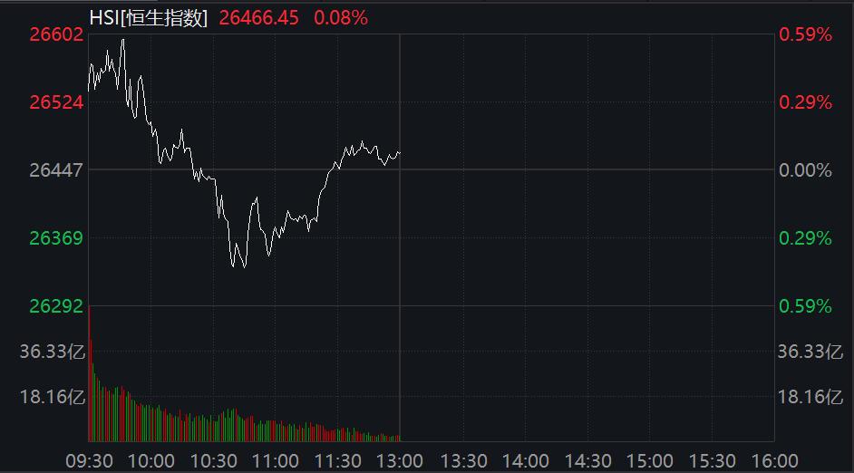 【恒指微涨0.07%】截至午盘,恒生指数涨0.07%,恒生科技指数涨0.39%;市场半日成交额1601.8亿港元,南向资金净买入24.47亿港元。(中新经纬APP)