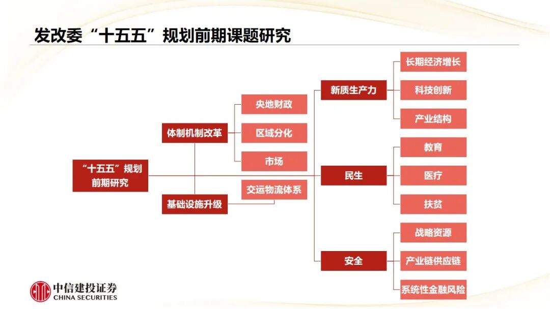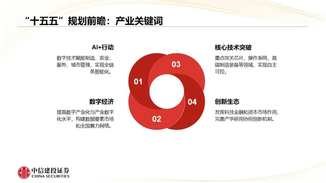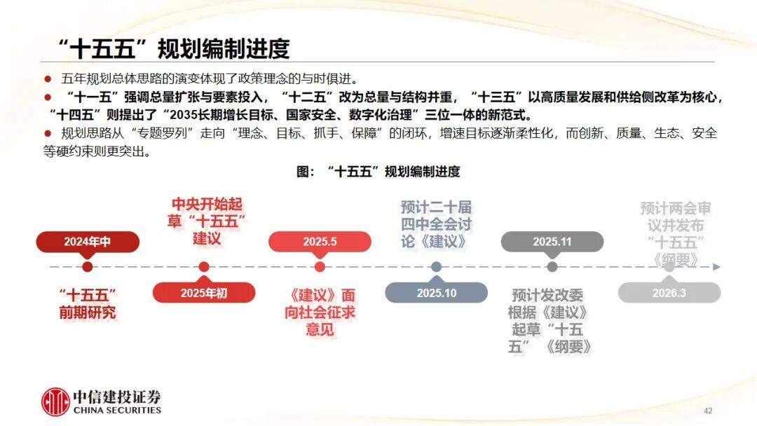 “十五五”期间正处于第四次科技与工业革命之际。预计“十五五”规划将重点突出科技发展、新质生产力、提振内需、民生安全等内容。