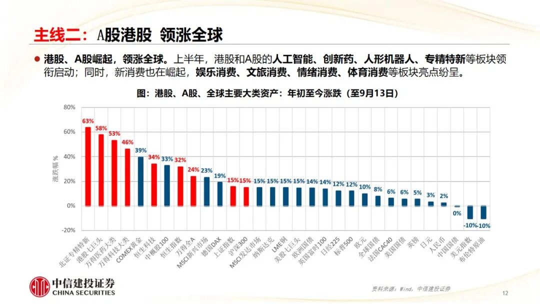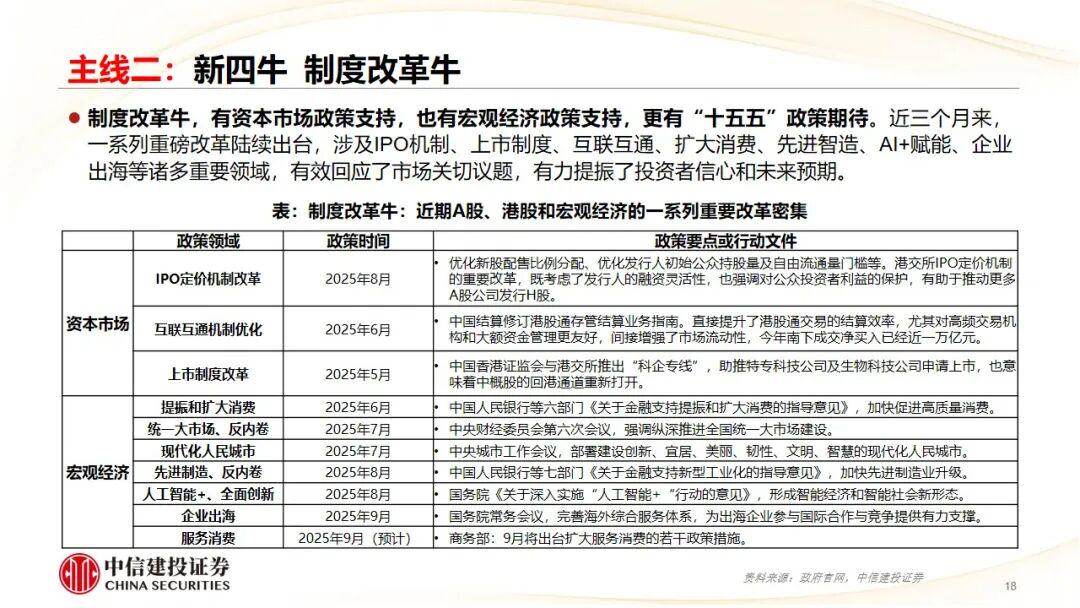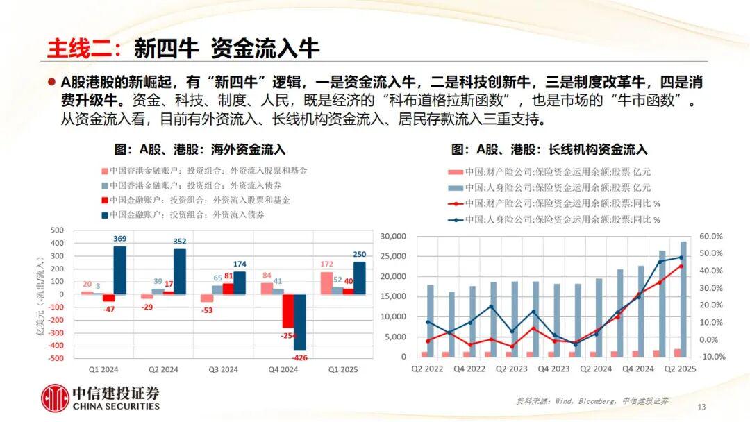 主线二:资产价格。A股港股,领涨全球;“新四牛”,资金流入牛,科技创新牛,制度改革牛,消费升级牛。