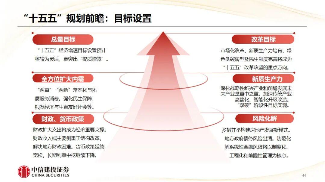 “十五五”期间正处于第四次科技与工业革命之际。预计“十五五”规划将重点突出科技进步、新质生产力、内需升级、制度开放、民生安全等内容。继续看好A股和港股。