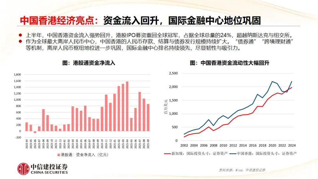 亮点四:消费“新浪潮”与中国香港国际贸易金融中心。消费趋势分化加剧,成为观察经济活力的重要窗口;资金流入回升,中国香港国际贸易与金融中心地位巩固。
