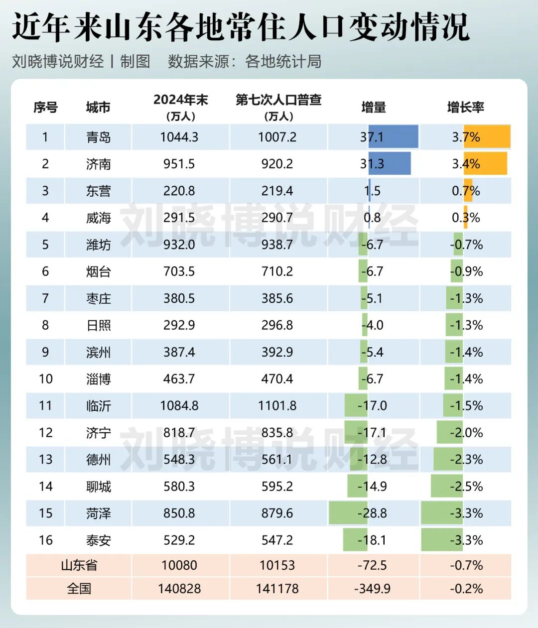第七次人口普查后、到2024年底的这4年里,沿海四强省:广东、江苏、山东、浙江,谁的人口增长最好?