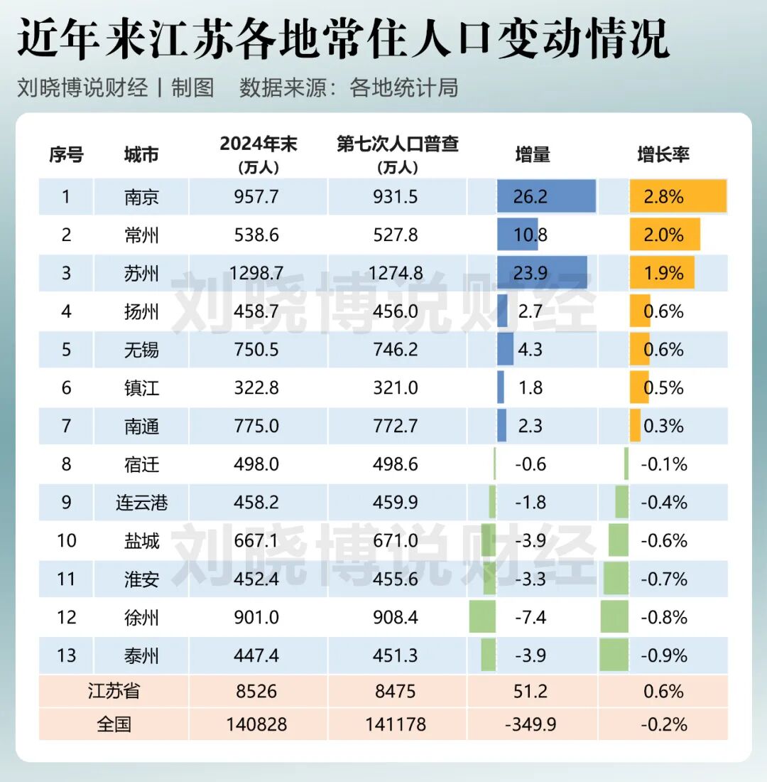 江苏人口流失比较多的城市,也基本上都在北部,比如靠近山东的徐州。