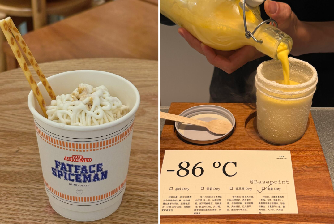 “泡面版阿芙佳朵”将冰激凌球做成面条状,再搭配两根筷子形状的饼干,最后淋入像酱料包的咖啡液;而“-86度Dirty”则把杯子提前冷冻至-86℃,再倒入热浓缩咖啡,凭借极致的冷热反差,将日销量稳定在500杯以上。