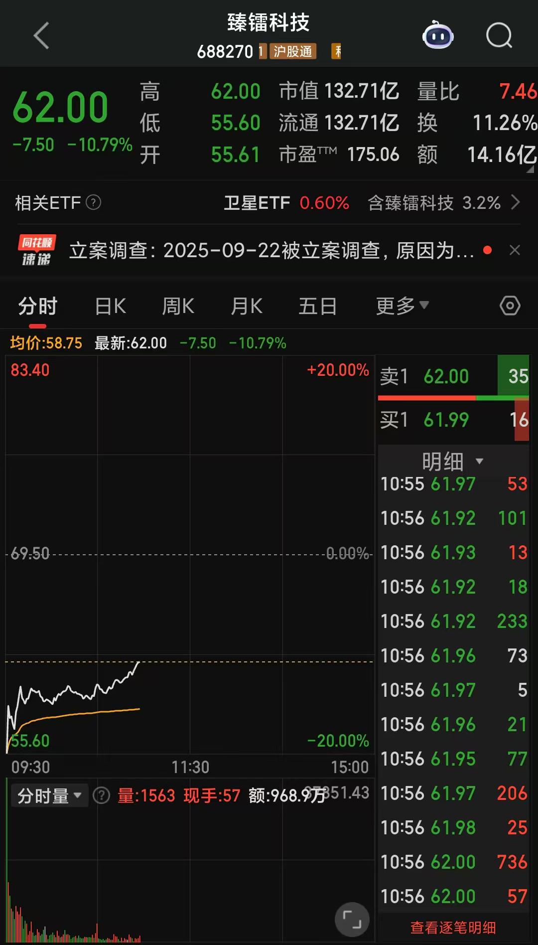 业绩方面,臻镭科技上半年实现营业收入2.05亿元,同比增长73.64%;归母净利润6231.97万元,同比增长1006.99%;基本每股收益0.29元。